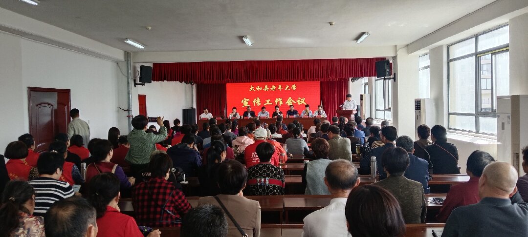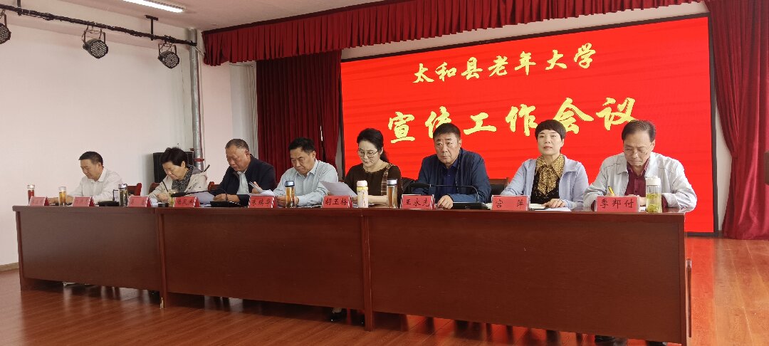 9月24日,太和县老年大学召开宣传工作会议,总结春季学期宣传工作,部署下一阶段宣传任务。县委组织部副部长朱瑞华、县委宣传部副部长胡玉梅及县老年大学校长陆凤杰等校委会组成人员、各系主任、全体教师、班长、党小组长、学生会成员、校通讯员、班级通讯员参会。
