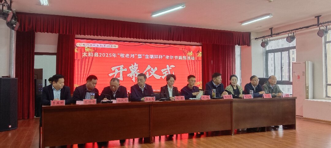 10月11日,太和县2025年“敬老月”暨“金瑞祥杯”老年书画展活动开幕仪式在县老年大学举行。县人大常委会主任鲍黎出席并宣布开幕。县委常委、宣传部长韩超致辞,县政府副县长李永军、县政协副主席张可畏及县老年大学校长陆凤杰、县直相关单位负责人,各乡镇分管负责同志、老同志代表等出席开幕式。