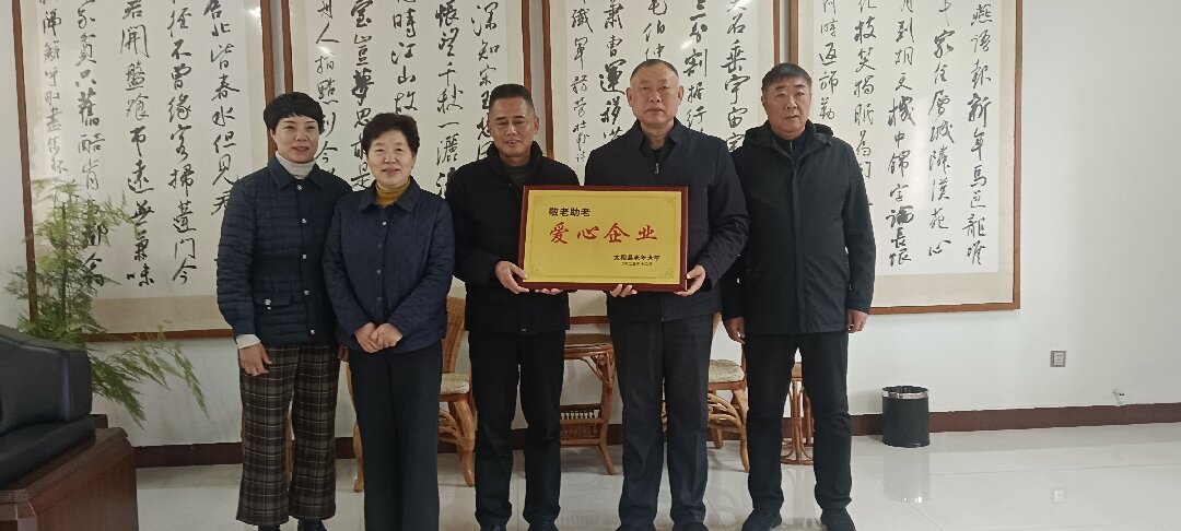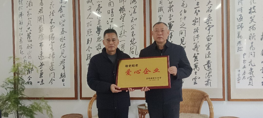 12月17日,太和县老年大学校长陆凤杰一行专程前往安徽富泰发饰文化股份有限公司,举行"敬老助老爱心企业"授牌仪式,将饱含敬意的匾牌郑重授予公司总经理刘献,以此表彰该企业对太和老年教育事业的帮助和支持。