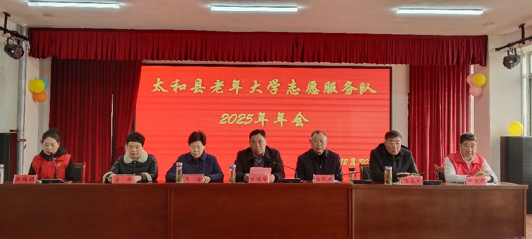 12月30日,太和县老年大学志愿服务队2025年年会隆重召开。太和县委组织部副部长朱瑞华,太和县老年大学校长陆凤杰及校委会成员、志愿服务队全体队员参加会议。