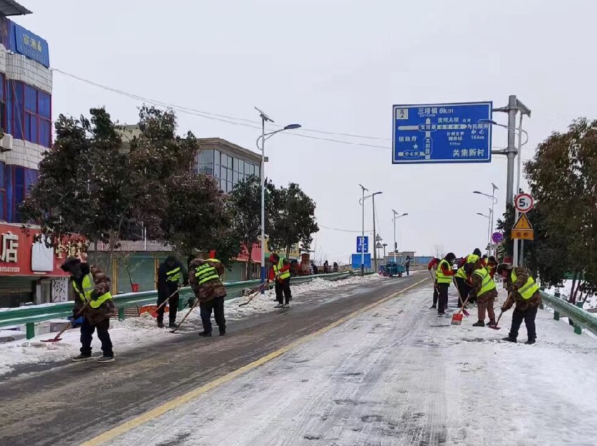 保障道路畅通。关集镇通过出动铲雪车、喷洒融雪剂等方法,对主干道开展扫雪除冰作业,确保关集镇道路畅通,并加强道路交通执勤疏导,提醒车辆减速慢行、行人注意防滑防摔。此外,还积极动员各村及镇直单位清扫单位驻地周边冰雪,为群众办事、出行提供便利。